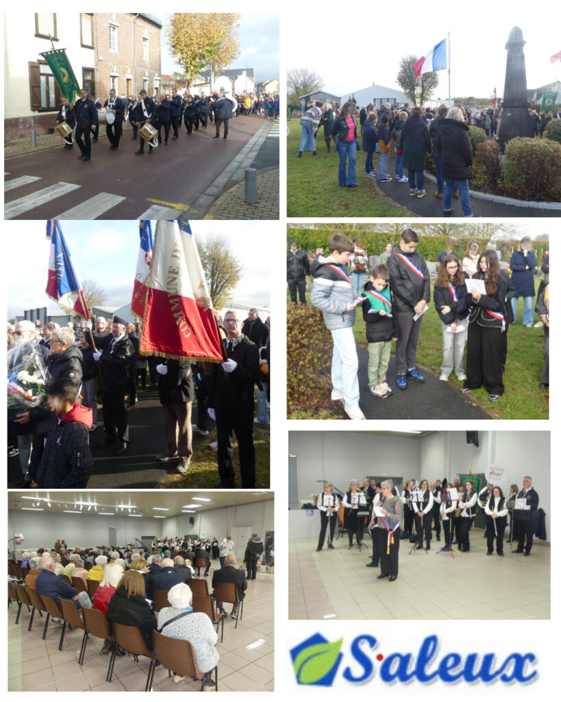 À Saleux, de nombreux habitants ont défilé dans les rues jusqu’au monument aux morts, accompagnés par l’Harmonie Municipale.