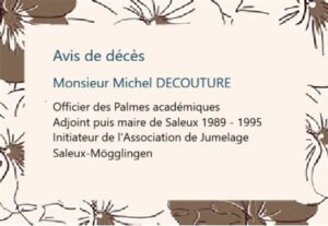 C’est avec une profonde tristesse que nous avons appris le décès de Monsieur Michel DECOUTURE, adjoint puis maire de Saleux de mars 1989 à juin 1995. […]