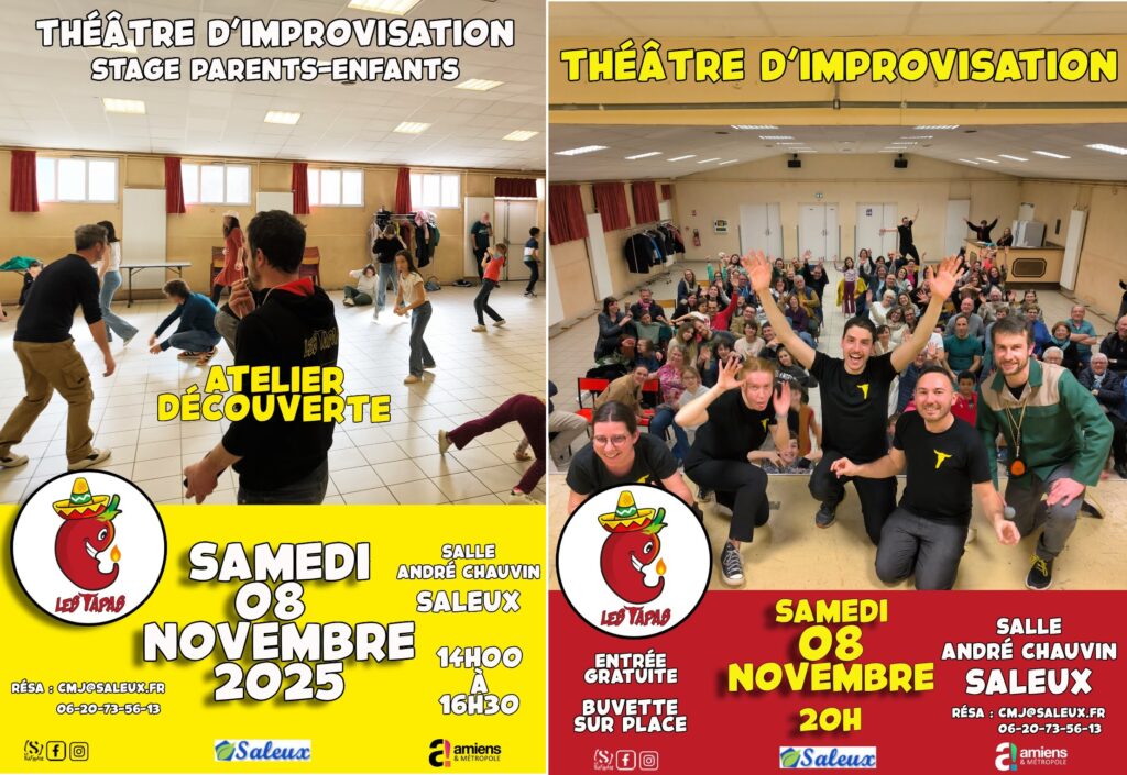 21/10/2025Les TAPAS reviennent à Saleux! Le nouveau rendez-vous d’improvisation théâtrale est prévu le 8 novembre prochain à la salle André Chauvin.